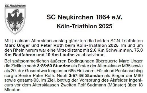 Unsere beiden Sportkameraden Marc Unger und Peter Roth sind in Köln bei einer Mitteldistanz dabei gewesen.