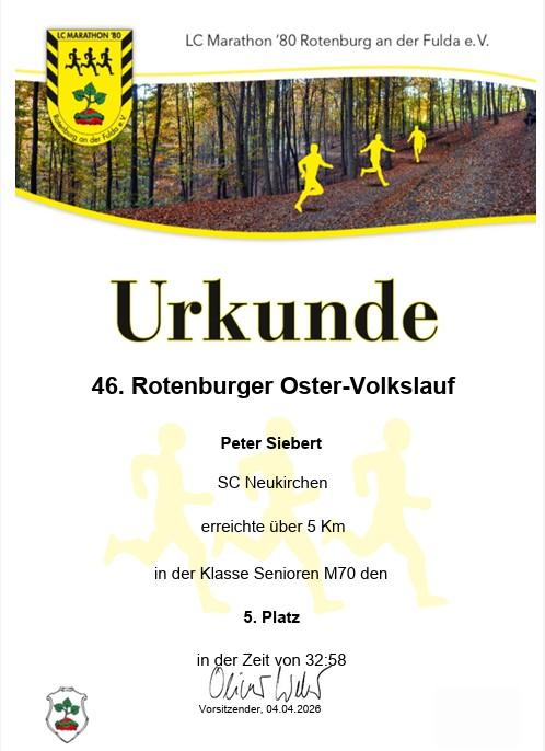 Unser sportlichen Ehepaar Angelika und Peter Siebert sind in Rotenburg beim Osterlauf im Rahmen des Nordhessen Cup die 4,9 km gelaufen. Peter R. hat die 18 km unter seine Laufschuhe genommen. LCM-OsterlaufRund um Braach findet jedes Jahr der Rotenburger Oster-Volkslauf statt. Alle Infos zu den Lauf-Cups findet ihr unten über die gelben Schaltflächen. Der Rotenburger Oster-Volkslauf findet bereits zum 46. Mal statt. Im Vordergrund stehen Spaß an der Bewegung und Breitensport. Start und Ziel ist die Bernhard-Faust-Sporthalle in 36199 Rotenburg a. d. Fulda, Braacher Straße 13.