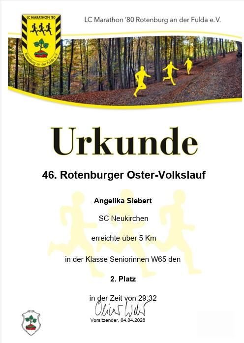 Unser sportlichen Ehepaar Angelika und Peter Siebert sind in Rotenburg beim Osterlauf im Rahmen des Nordhessen Cup die 4,9 km gelaufen. Peter R. hat die 18 km unter seine Laufschuhe genommen. LCM-OsterlaufRund um Braach findet jedes Jahr der Rotenburger Oster-Volkslauf statt. Alle Infos zu den Lauf-Cups findet ihr unten über die gelben Schaltflächen. Der Rotenburger Oster-Volkslauf findet bereits zum 46. Mal statt. Im Vordergrund stehen Spaß an der Bewegung und Breitensport. Start und Ziel ist die Bernhard-Faust-Sporthalle in 36199 Rotenburg a. d. Fulda, Braacher Straße 13.