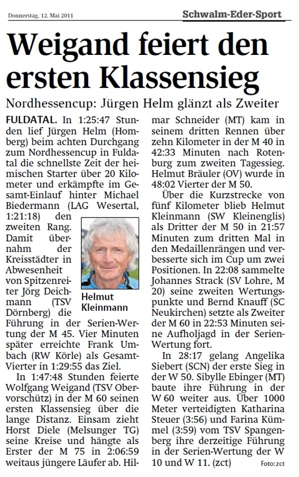 Volkslauf der LG Fuldatal - 8. Lauf der Nordhessencup-Serie 201108.05.2011