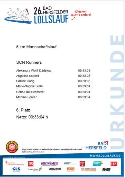 Uner der Angabe SCN Runners haben unsere Sportkameradinnen Angelika Siebert, Doris Schmerer, Sabine Görig, Alexandra Wolff-Dädelow und Marie-Sophie Diehl einen 5 km Mannschaftslauf in Bad Hersfeld absolviert. Stephar Raatz und Oliver Schöllmann waren beim 10 km Lauf dabei. Nik Friedrich hat die 5 km Strecke bewältigt.