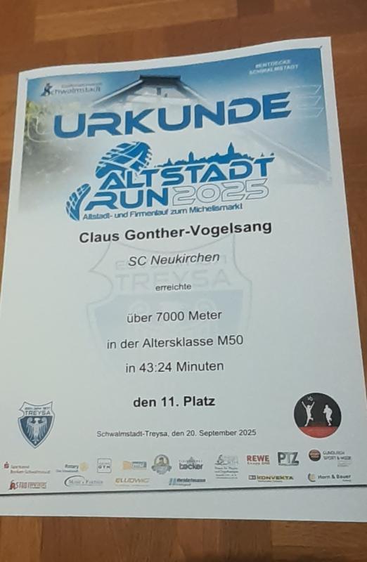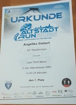 Den Altstadtlauf über 7.000 m haben Angelika Siebert und Claus Gonther bestritten. Marc´s Tochter Carlotta war beim Bambinilauf über 200 m dabei und ist innerhalb einer Sekunde mit der 1. und 2. Läuferin ins Ziel gekommen. Da werden wir sicher, im Laufe der Zeit, eine sportliche Entwicklung sehen können.